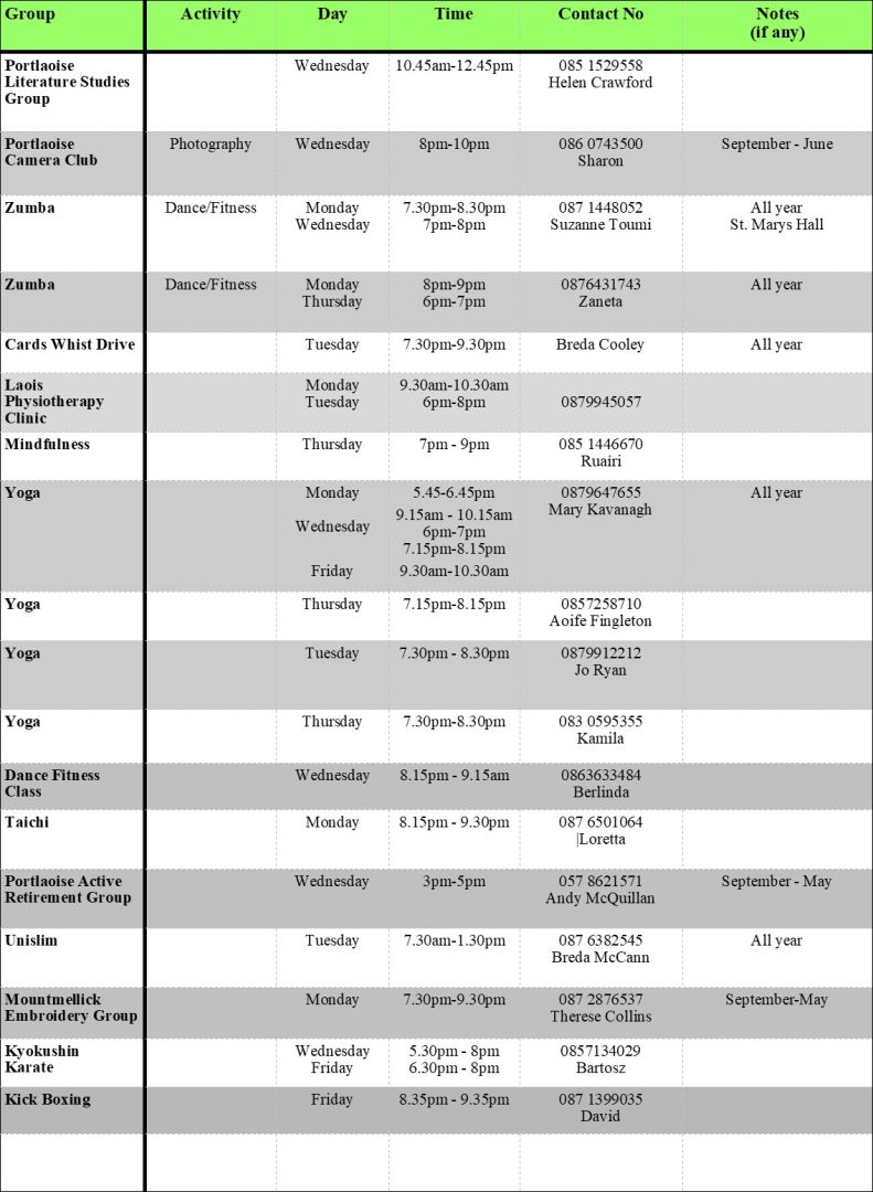 To book a room for a single meeting or for a series of sessions contact the centre manager Declan Kelly at 057 862 1142.